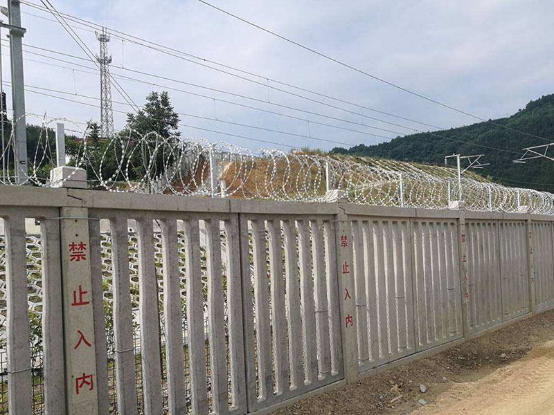 產(chǎn)品材質(zhì)及工藝:內(nèi)部采用HPB300冷拔低碳鋼絲與Q235矩管邊框;焊接完畢后,表面采用整體熱鍍鋅后浸塑處理,浸塑粉末一般采用墨綠、表面光滑、平整、日久抗腐蝕、抗紫外線的特性。鐵路防護(hù)柵欄是鐵路的安全設(shè)施安裝工程,主要應(yīng)用在鐵路軌道兩側(cè),用來(lái)防止來(lái)往的行人接近軌道及來(lái)往的火車(chē),以保證行人的人身安全。因此,鐵路防護(hù)柵欄無(wú)論在技術(shù)上還是在質(zhì)量上都比其他隔離柵要求更加嚴(yán)格。鐵路防護(hù)柵欄采用立柱混凝土澆筑件,工程造價(jià)低,強(qiáng)度高,整體穩(wěn)定性好,適合大面積采用。